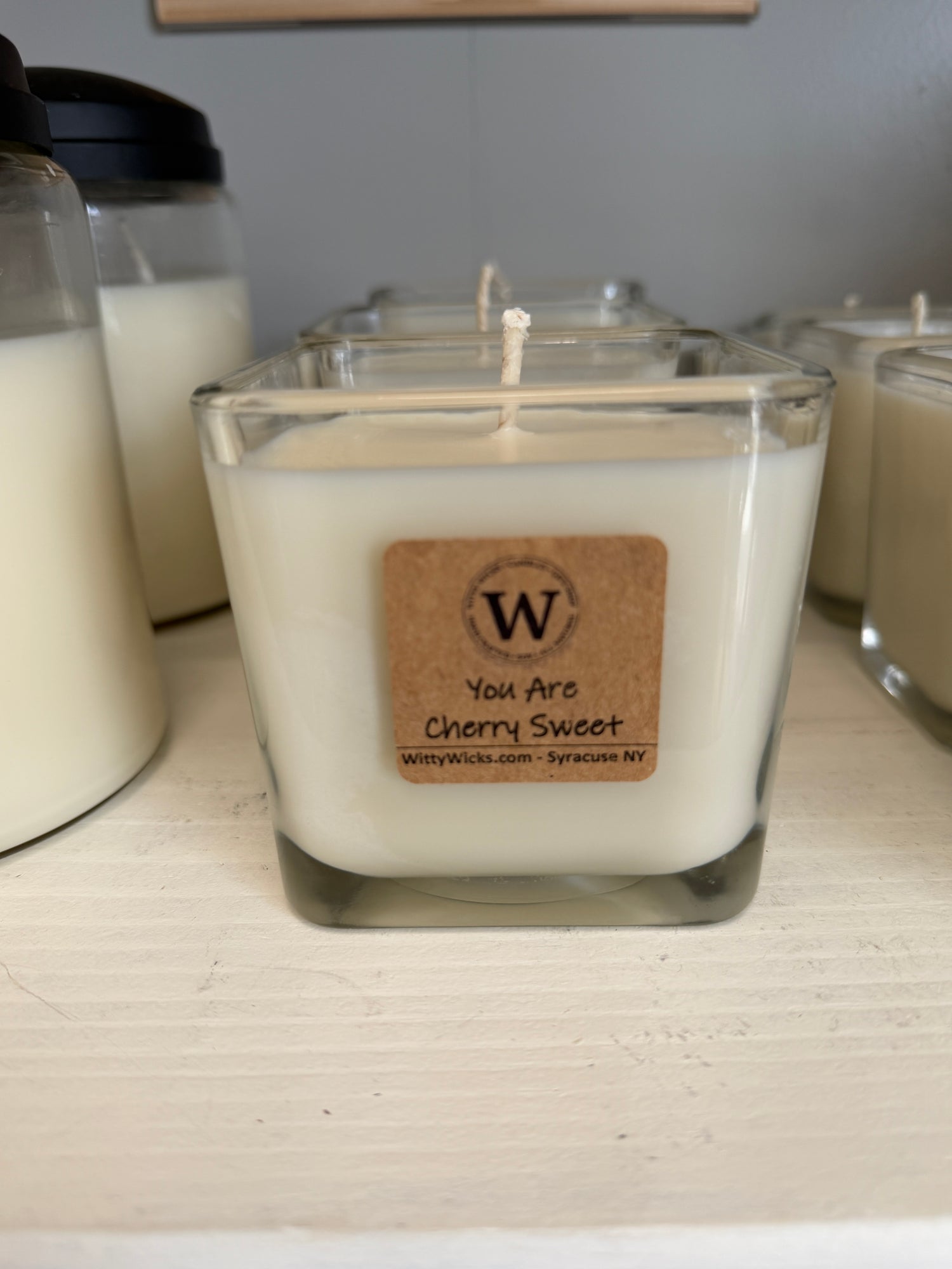 Witty Wicks all-natural soy candles are all hand poured with care and given individual attention.