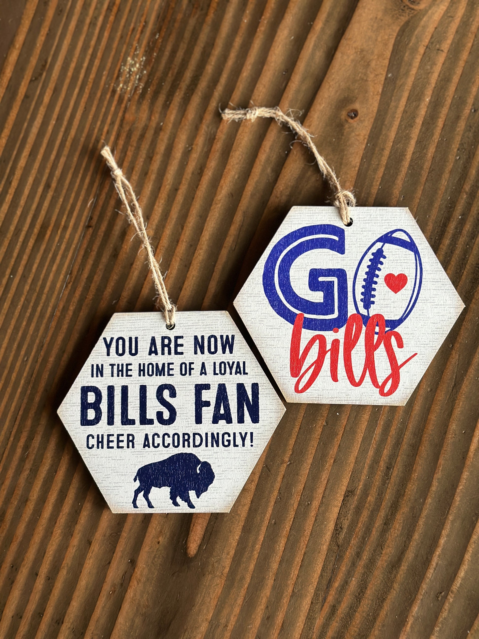 Hand Painted Wooden Christmas Ornaments Celebrating Buffalo Bills
