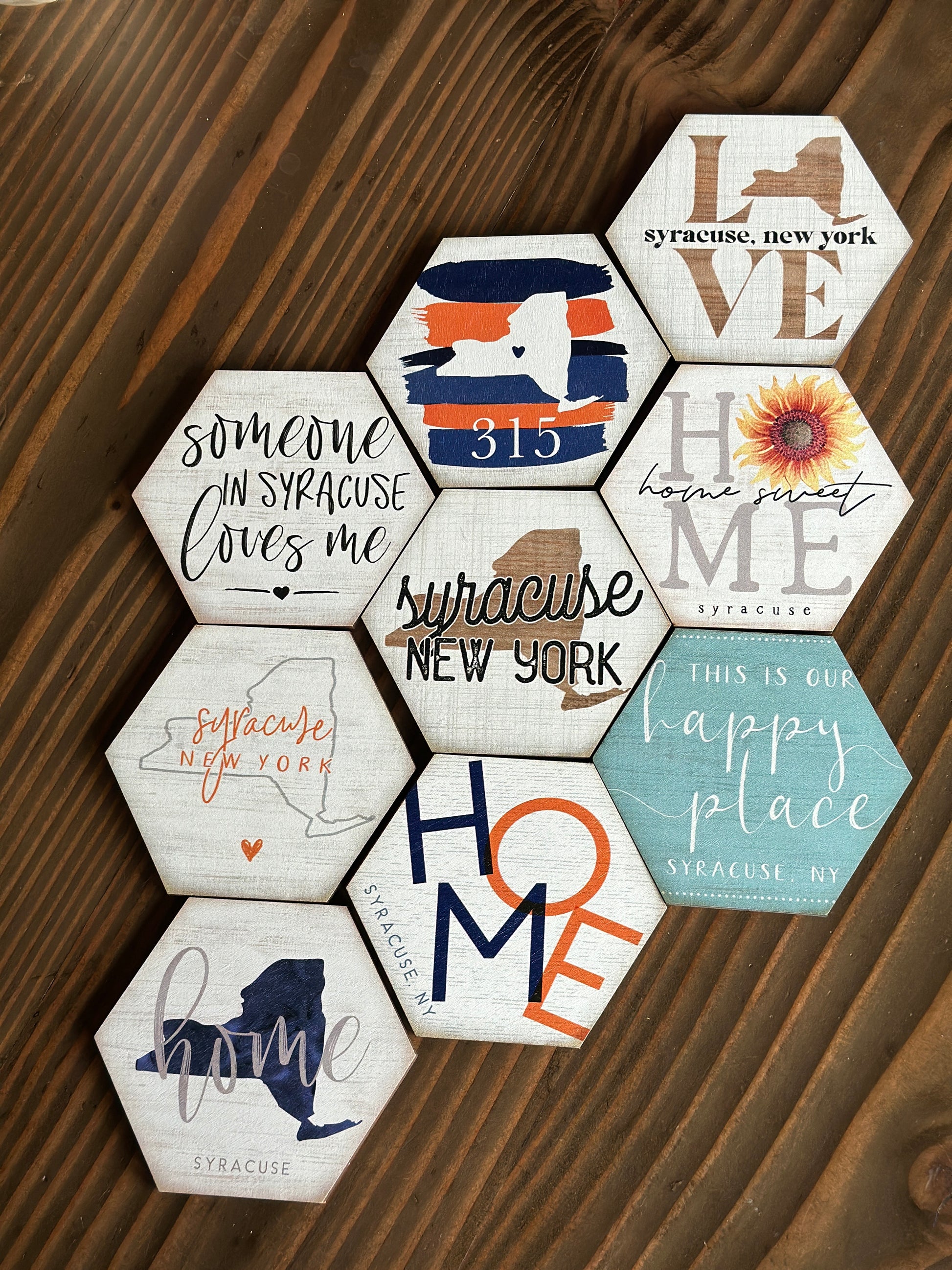 Hand Painted Wooden Coaster/Magnets with custom Syracuse and New York Themes