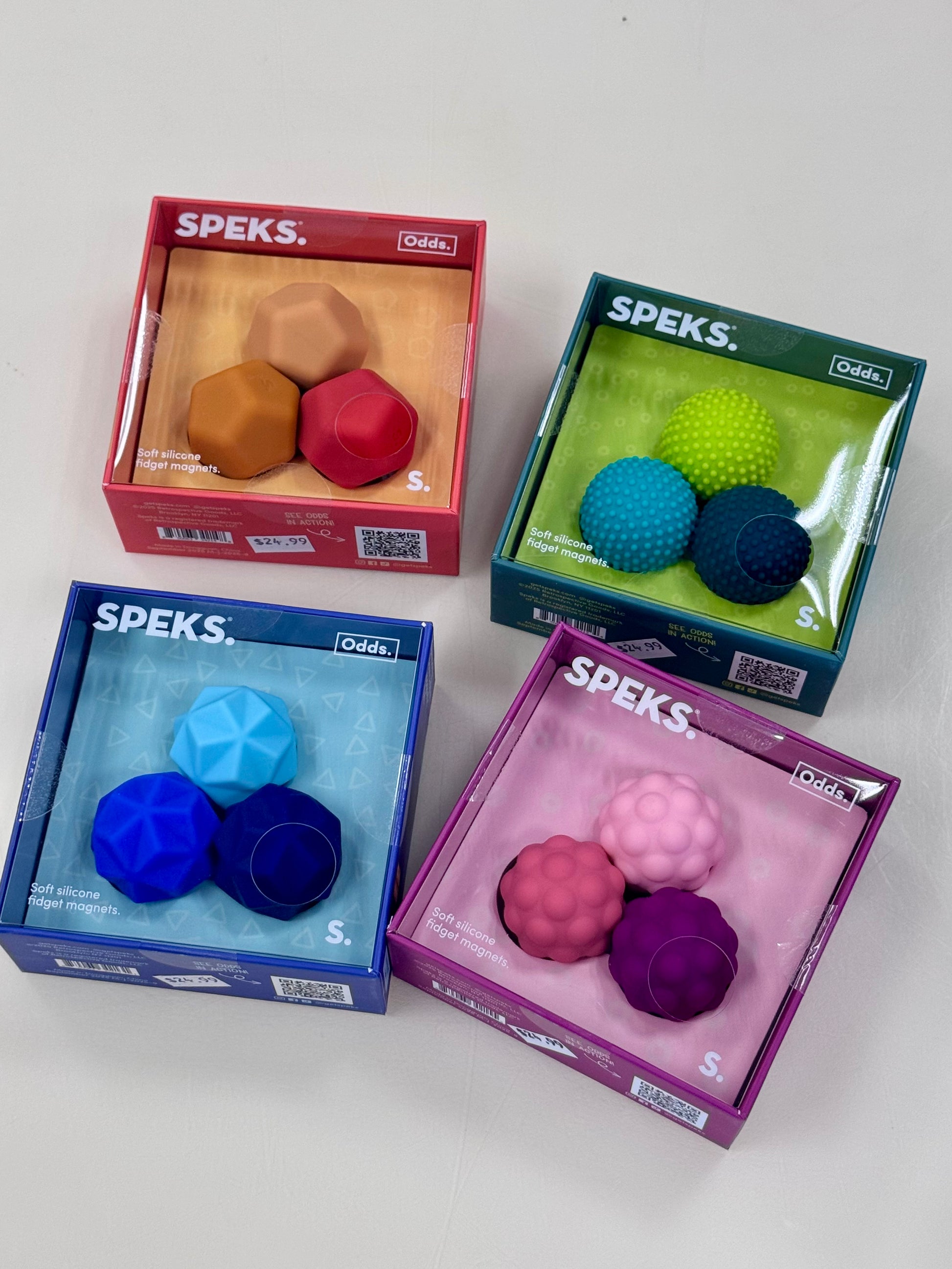 Meet Odds, our quietest fidget yet. Textured silicone with a magnetic core, Odds come in various colors and shapes, each providing unique palm massaging satisfaction. Designed to be discrete, sneak them into meetings to keep your hands busy and your mind focused.
